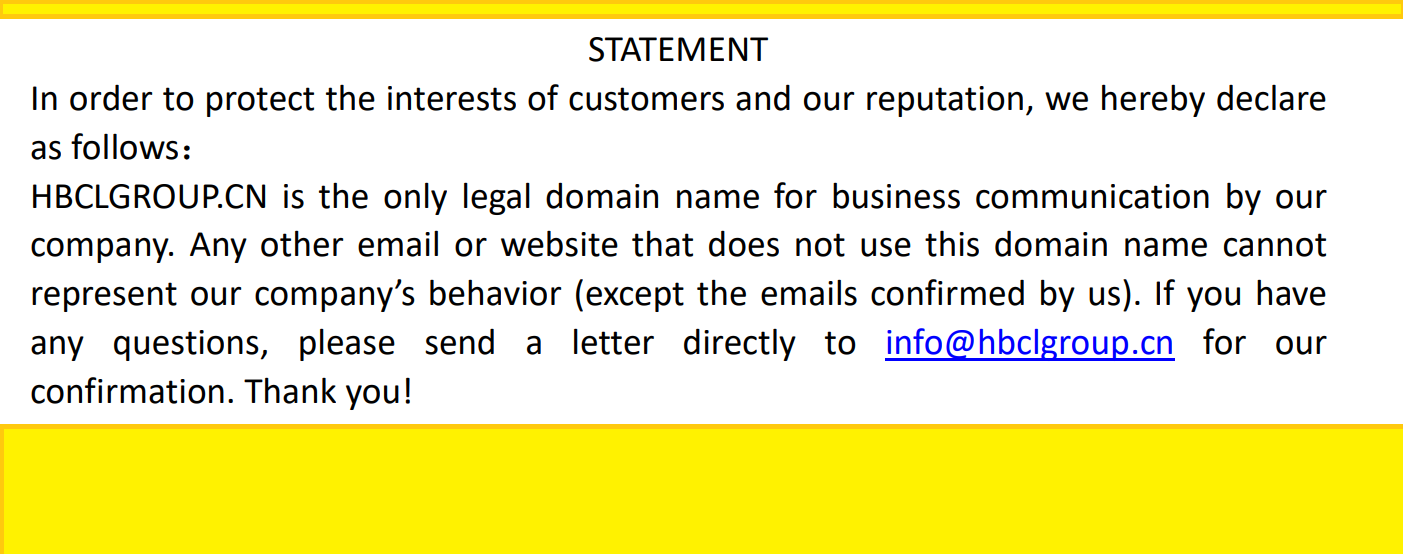 HBCLGROUP.CN is the only legal domain name for business communication by our company.